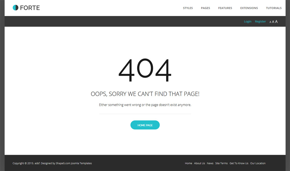Shape5 Vertex uses articles to display a 404 page rather than a hard coded php file that's hard to modify, like many other designs do. This means you can modify the look or wording of the page very easy without having to modify a file, and it keeps all of your site navigation in tact for ease of use for your site viewers since it uses the template and not an external file. It's as simple as editing an article through the CMS to make any desired changes, or simply leave it as shown! Our site shapers come pre-packaged with the custom 404 page article. If you are setting up a brand new site without a site shaper the easy follow instructions are below the screenshot on this page.